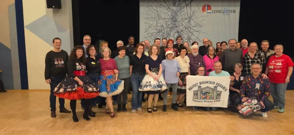 Angie and George had the joy of taking the Brushy Mountain Squares internationally to dance with the Castle Ghosts Square Dance Club in Germany—the very place where Angie first learned to square dance 14 years ago, before moving to the United States. What an incredible homecoming, sharing friendships, memories, and the love of square dancing across continents. Square dancing truly knows no borders!